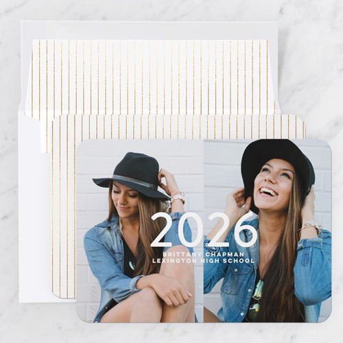 Celebrate the new graduate with this unique graduation announcement. Personalize with the graduate's name and the event details.