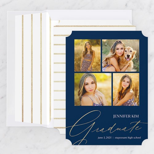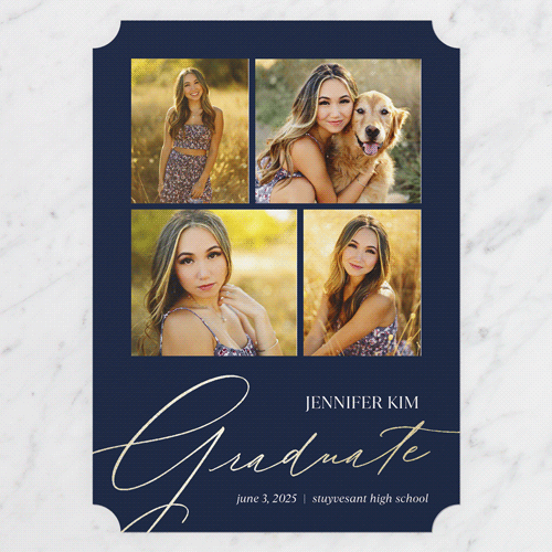 Celebrate the new graduate with this unique graduation announcement. Personalize with the graduate's name and the event details.