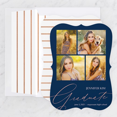 Celebrate the new graduate with this unique graduation announcement. Personalize with the graduate's name and the event details.