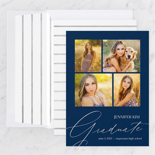 Celebrate the new graduate with this unique graduation announcement. Personalize with the graduate's name and the event details.