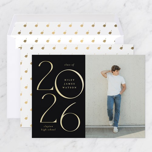 Celebrate the new graduate with this unique graduation announcement. Personalize with the graduate's name and the event details.