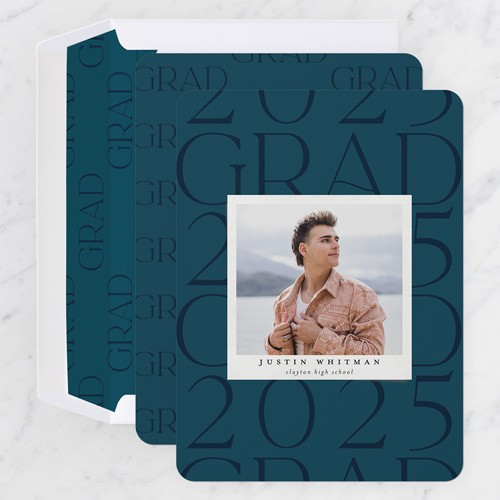 Celebrate the new graduate with this unique graduation announcement. Personalize with the graduate's name and the event details.