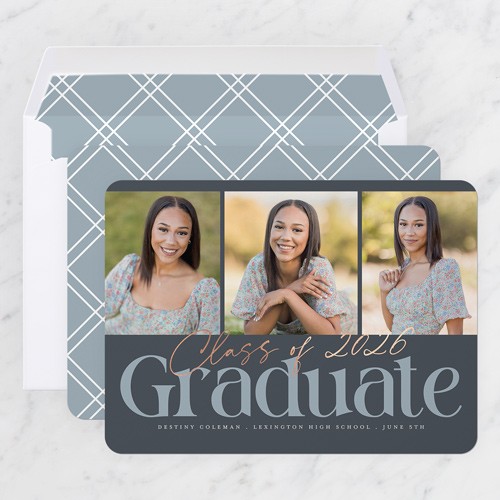 Celebrate the new graduate with this unique graduation announcement. Personalize with the graduate's name and the event details.