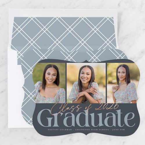 Celebrate the new graduate with this unique graduation announcement. Personalize with the graduate's name and the event details.