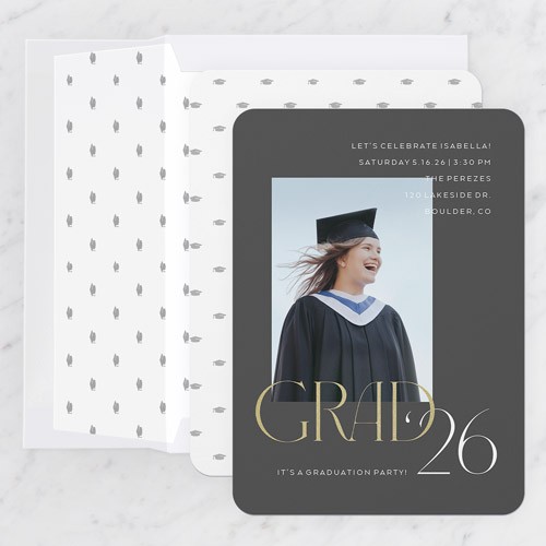 Invite the guests to the celebration with stylish graduation invitations. Personalize with all the event details.