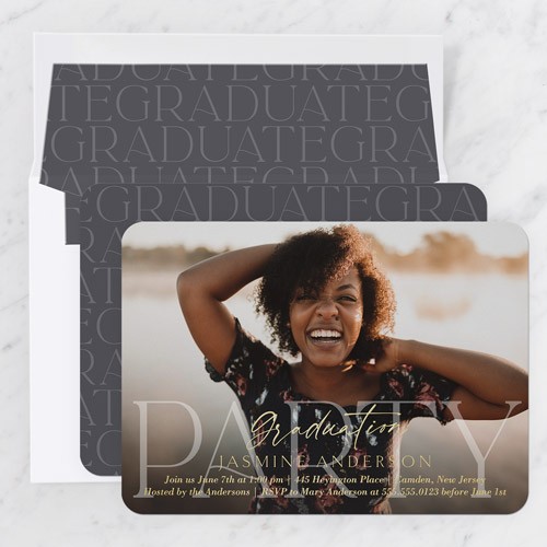 Invite the guests to the celebration with stylish graduation invitations. Personalize with all the event details.
