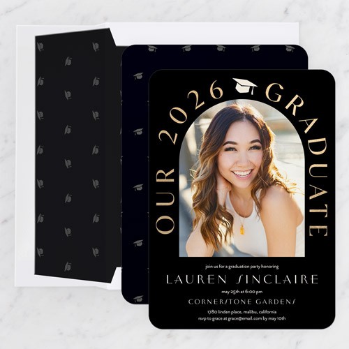 Invite the guests to the celebration with stylish graduation invitations. Personalize with all the event details.