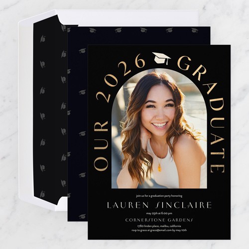 Invite the guests to the celebration with stylish graduation invitations. Personalize with all the event details.