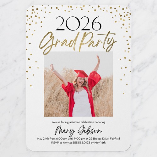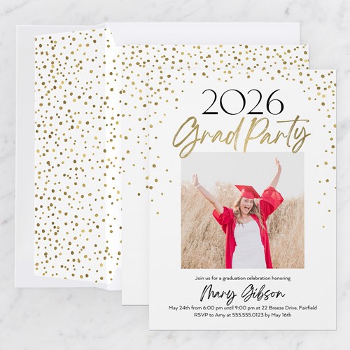Invite the guests to the celebration with stylish graduation invitations. Personalize with all the event details.