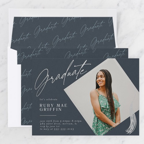 Invite the guests to the celebration with stylish graduation invitations. Personalize with all the event details.