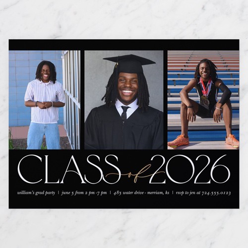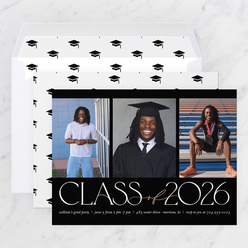 Invite the guests to the celebration with stylish graduation invitations. Personalize with all the event details.