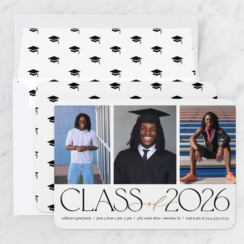 Invite the guests to the celebration with stylish graduation invitations. Personalize with all the event details.