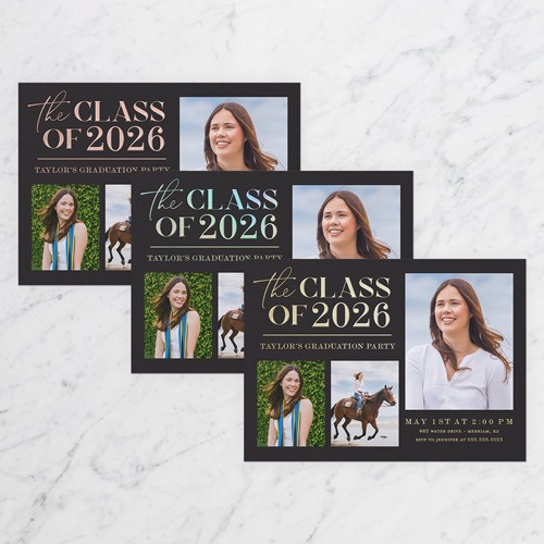 Invite the guests to the celebration with stylish graduation invitations. Personalize with all the event details.