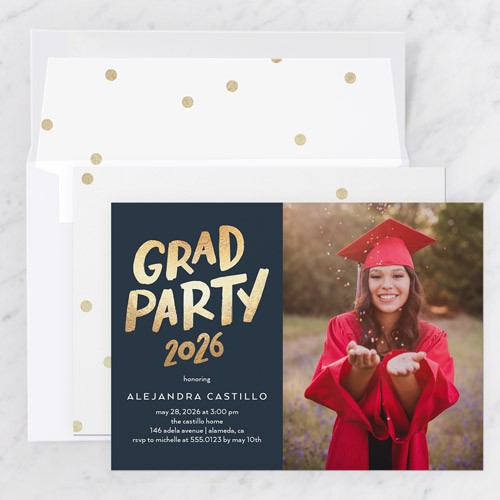 Invite the guests to the celebration with stylish graduation invitations. Personalize with all the event details.