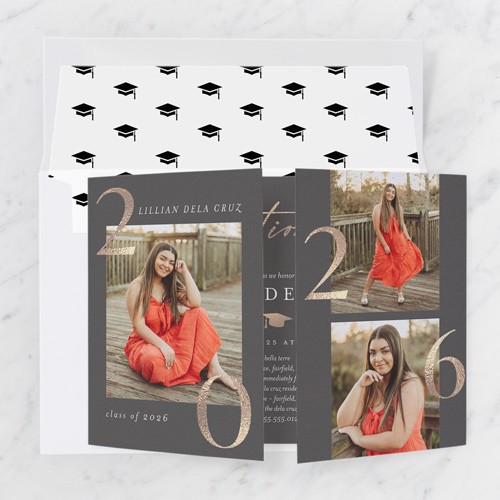 Let your Graduate’s story unfold with this unique card that opens up from the middle to reveal your photos. Enjoy more room for photos and text than a standard card.