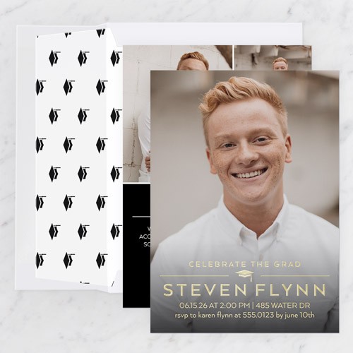 Invite the guests to the celebration with stylish graduation invitations. Personalize with all the event details.