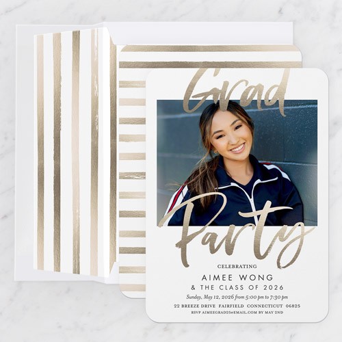 Invite the guests to the celebration with stylish graduation invitations. Personalize with all the event details.