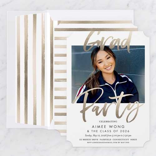 Invite the guests to the celebration with stylish graduation invitations. Personalize with all the event details.