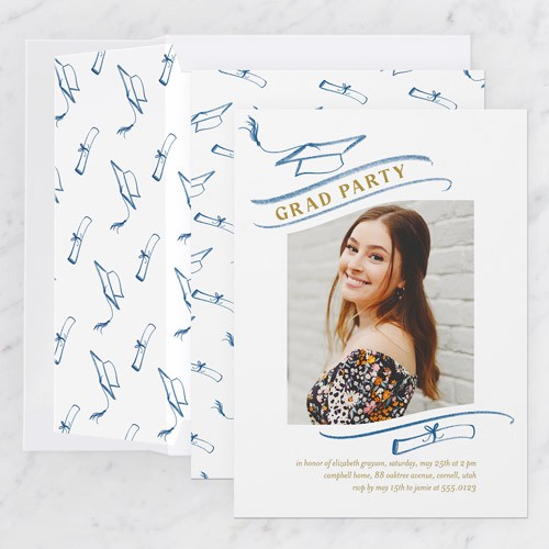Invite the guests to the celebration with stylish graduation invitations. Personalize with all the event details.