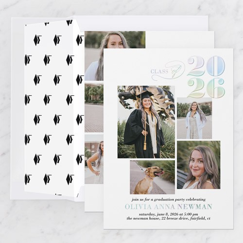 Invite guests to your celebration with a stylish graduation invitation. Personalize with event details, foil options, and custom colors. Add 1-4 photos on the front and 1-3 photos on the back for a personalized touch. Perfect for making your milestone memorable!