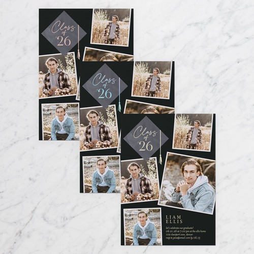 Invite guests to your celebration with a personalized graduation invitation. Customize with event details and choose foil options for an elegant touch. Add 1-4 photos on the front and up to 16 photos on the back for a truly memorable keepsake. Perfect for celebrating your big achievement in style!