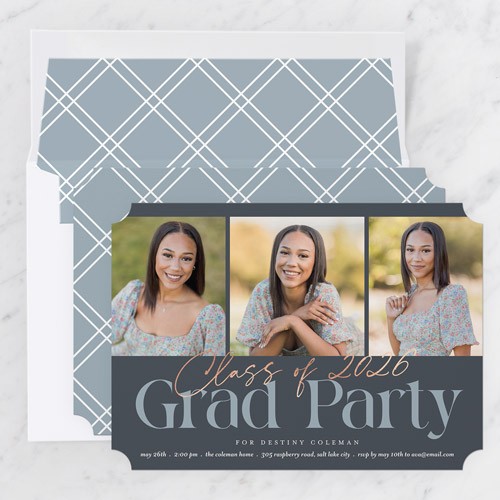 Invite the guests to the celebration with stylish graduation invitations. Personalize with all the event details.