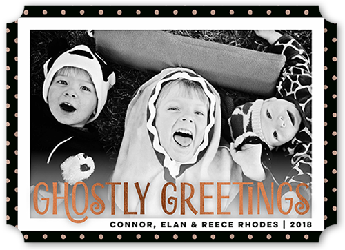Trick or Treat? Send frightfully fantastic greetings with a personalized Halloween card. Just add favorite photos and names.
