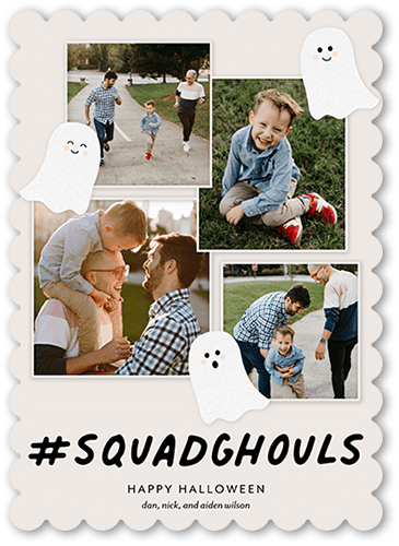 Trick or Treat? Send frightfully fantastic greetings with a personalized Halloween card. Just add favorite photos and names.