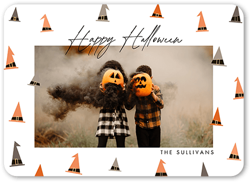 Trick or Treat? Send frightfully fantastic greetings with a personalized Halloween card. Just add favorite photos and names.