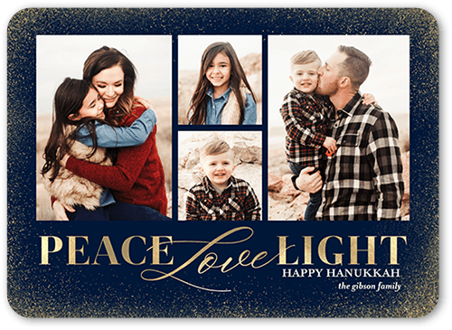 Send a Hanukkah card full of light and love. Add your own greeting and everyone's names. There's room for more photos and wishes on the back, too.