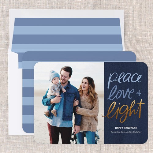 Send a Hanukkah card full of light and love. Add your own greeting and everyone's names. There's room for more photos and wishes on the back, too.