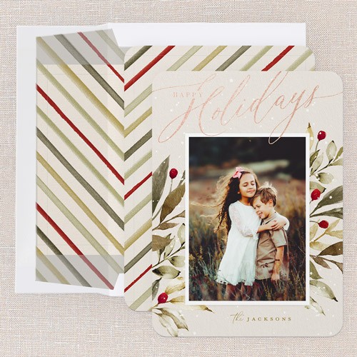 Send a holiday card friends and family will love. Add your own greeting and everyone's names. There's room for more photos and wishes on the back, too.