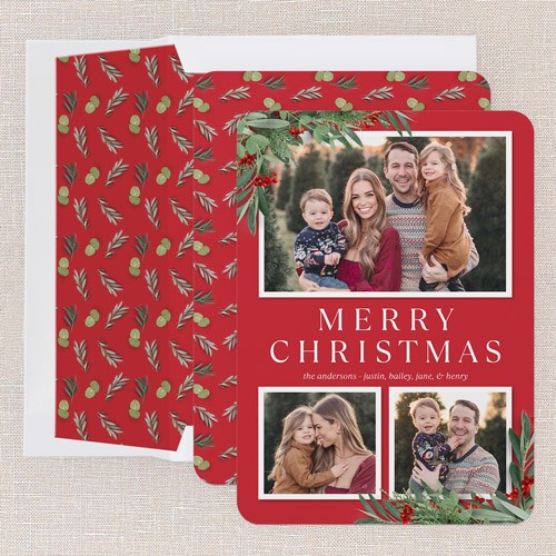 Send a holiday card friends and family will love. Add your own greeting and everyone's names. There's room for more photos and wishes on the back, too.
