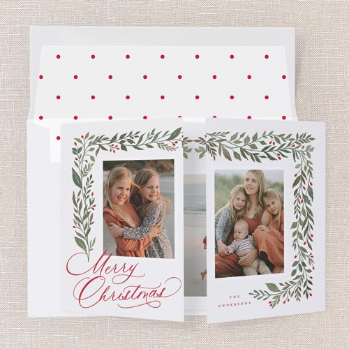 Send a holiday card friends and family will love. Add your own greeting and everyone's names. There's room for more photos and wishes on the back, too.