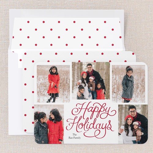Send a holiday card friends and family will love. Add your own greeting and everyone's names. There's room for more photos and wishes on the back, too.