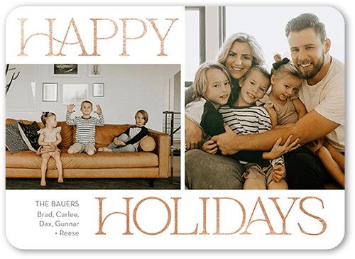 Send a holiday card friends and family will love. Add your own greeting and everyone's names. There's room for more photos and wishes on the back, too.