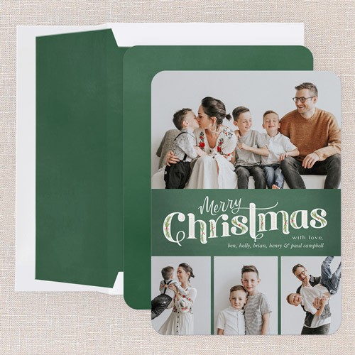 Send a holiday card friends and family will love. Add your own greeting and everyone's names. There's room for more photos and wishes on the back, too.