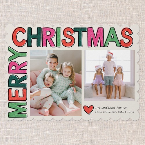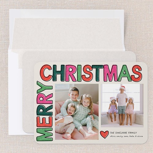 Send a holiday card friends and family will love. Add your own greeting and everyone's names. There's room for more photos and wishes on the back, too.