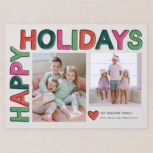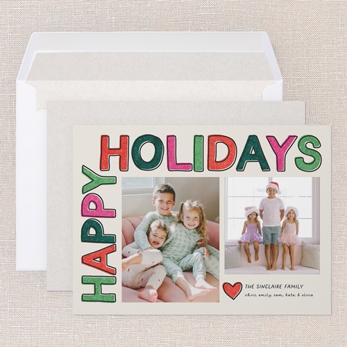 Send a holiday card friends and family will love. Add your own greeting and everyone's names. There's room for more photos and wishes on the back, too.