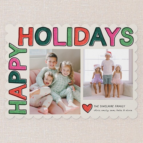 Send a holiday card friends and family will love. Add your own greeting and everyone's names. There's room for more photos and wishes on the back, too.