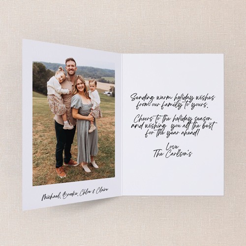 Send a holiday card friends and family will love. Add your own greeting and everyone's names. There's room for more photos and wishes on the back, too.