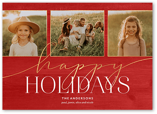 Send a holiday card friends and family will love. Add your own greeting and everyone's names. There's room for more photos and wishes on the back, too.