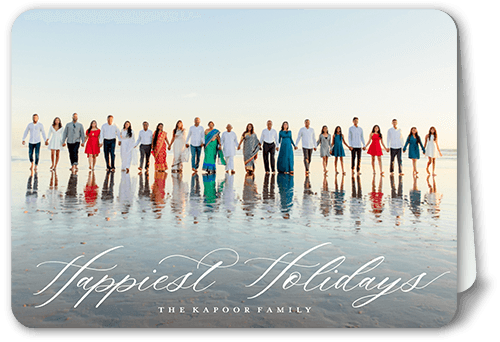 Make your photos shine in this holiday card. Add photos and holiday wishes on the front, back and inside, too.