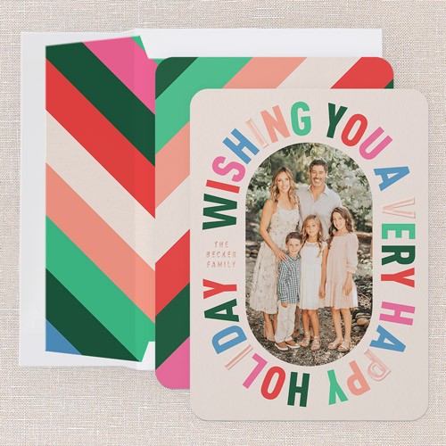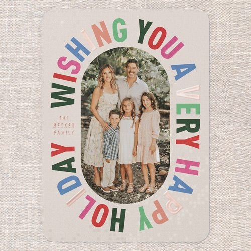 Send a holiday card friends and family will love. Add your own greeting and everyone's names. There's room for more photos and wishes on the back, too.