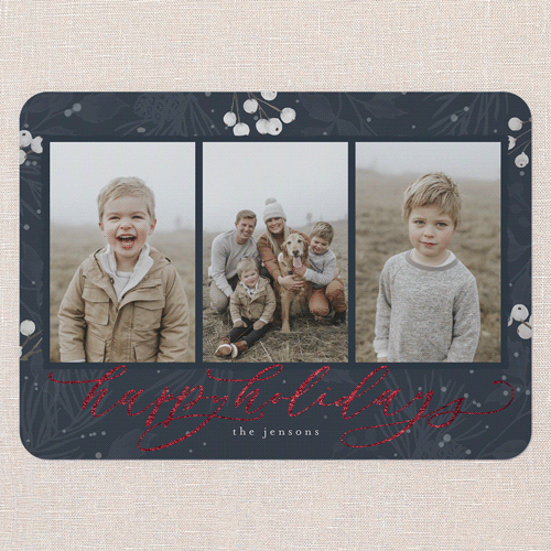 Send a holiday card friends and family will love. Add your own greeting and everyone's names. There's room for more photos and wishes on the back, too.