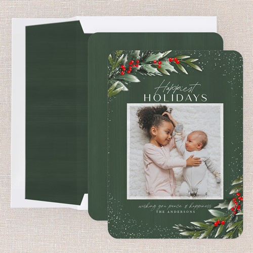 Send a holiday card friends and family will love. Add your own greeting and everyone's names. There's room for more photos and wishes on the back, too.