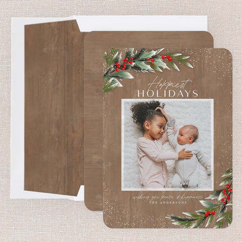 Send a holiday card friends and family will love. Add your own greeting and everyone's names. There's room for more photos and wishes on the back, too.