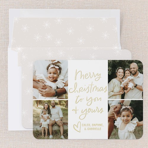 Send a holiday card friends and family will love. Add your own greeting and everyone's names. There's room for more photos and wishes on the back, too.