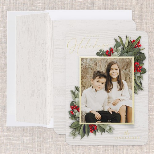 Send a holiday card friends and family will love. Add your own greeting and everyone's names. There's room for more photos and wishes on the back, too.