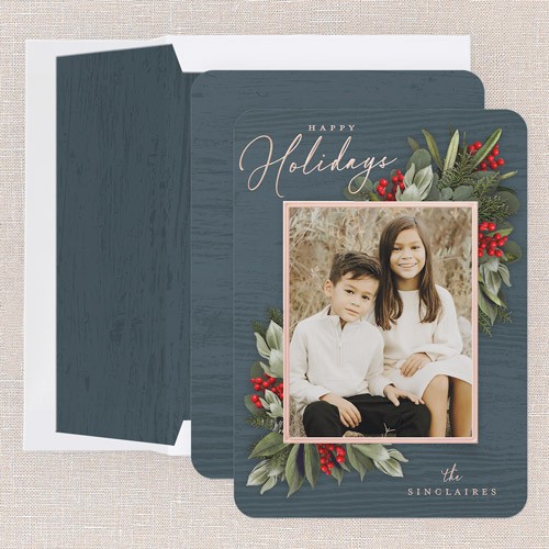 Send a holiday card friends and family will love. Add your own greeting and everyone's names. There's room for more photos and wishes on the back, too.
